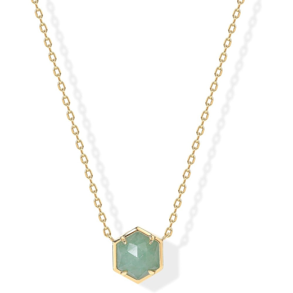 Elevate your style with our stunning pendant necklace. It features an 8.8mm green fluorite gemstone pendant and is paired with a 16″ plus 2″ extender chain with a lobster clasp.