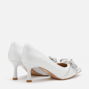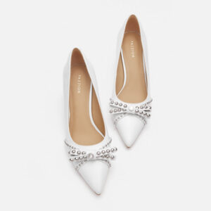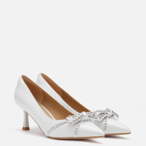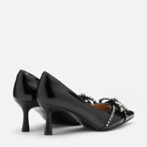 Revel in uncompromising grace with these refined pumps, crafted from premium cowhide leather and accented by a striking studded bow front with a delicate crystal centerpiece. The padded cushion ensures tailored support for the upper forefoot and toes, merging classic modernity with enduring comfort.