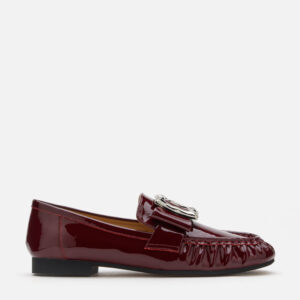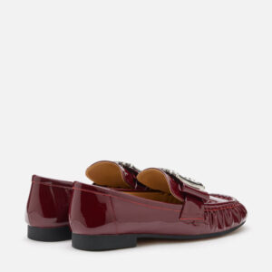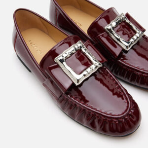 Infuse your wardrobe with quiet luxury through these patent leather loafers, featuring a distinctive oversized buckled bow that commands attention. Crafted with a supple lambskin lining and cushioned insole, they deliver an impeccable blend of comfort and refined minimalism. Available in timeless black and rich wine, these loafers embody effortless grace for any occasion.