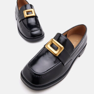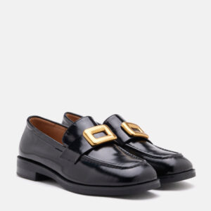Chic loafers meet style in a classic silhouette and a statement-making metal buckle front. Pair these with denim jeans, slick your hair back and get ready for compliments on this understated look.