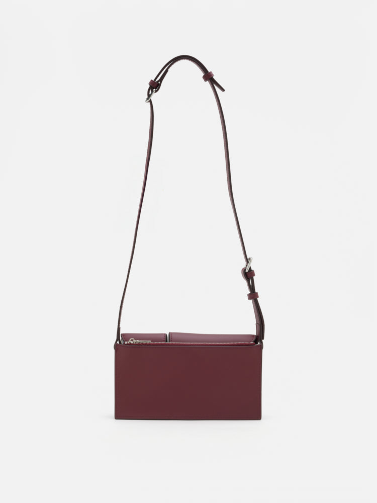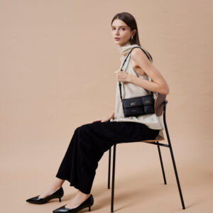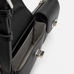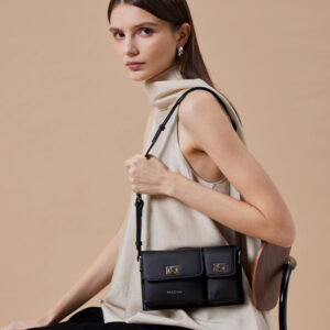 Defined by clean lines and sculptural precision, Aviana is crafted in smooth cowhide leather and softly lined with cotton fabric for a balance of structure and ease. Its elongated silhouette is designed for over-the-shoulder wear with an adjustable strap, offering fluidity in movement and form. Two distinct front compartments, each secured with polished twist-lock clasps, add architectural interest while maintaining refined utility. A discreet zip closure at the back completes the design with understated practicality.