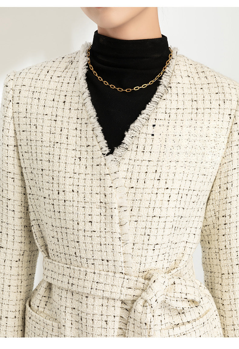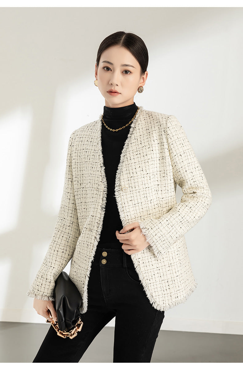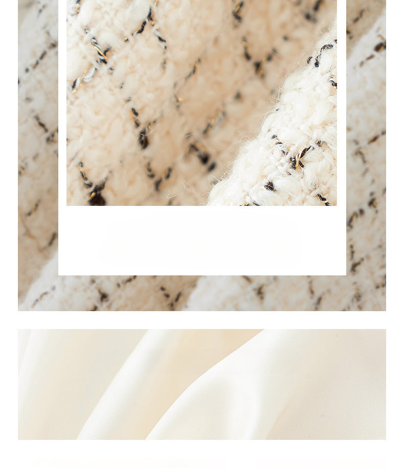 Autumn and winter new women’s clothing French elegant plaid tweed V-neck lace small fragrant style wool jacket