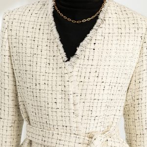Be the first to review “Autumn and winter new women’s clothing French elegant plaid tweed V-neck lace small fragrant style wool jacket” Cancel reply