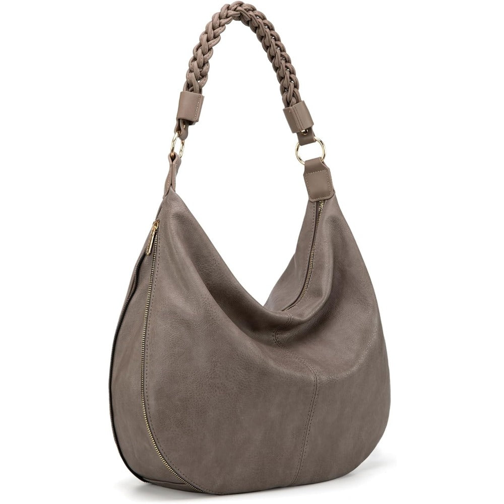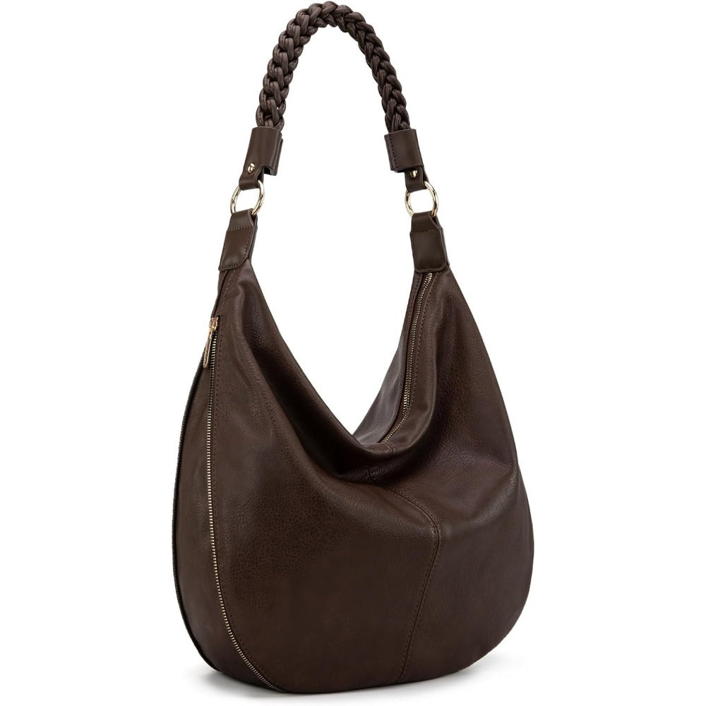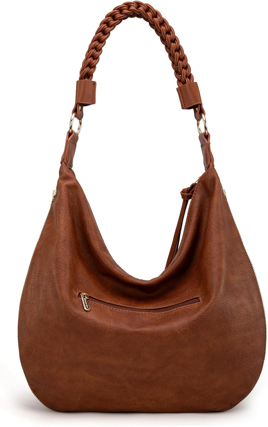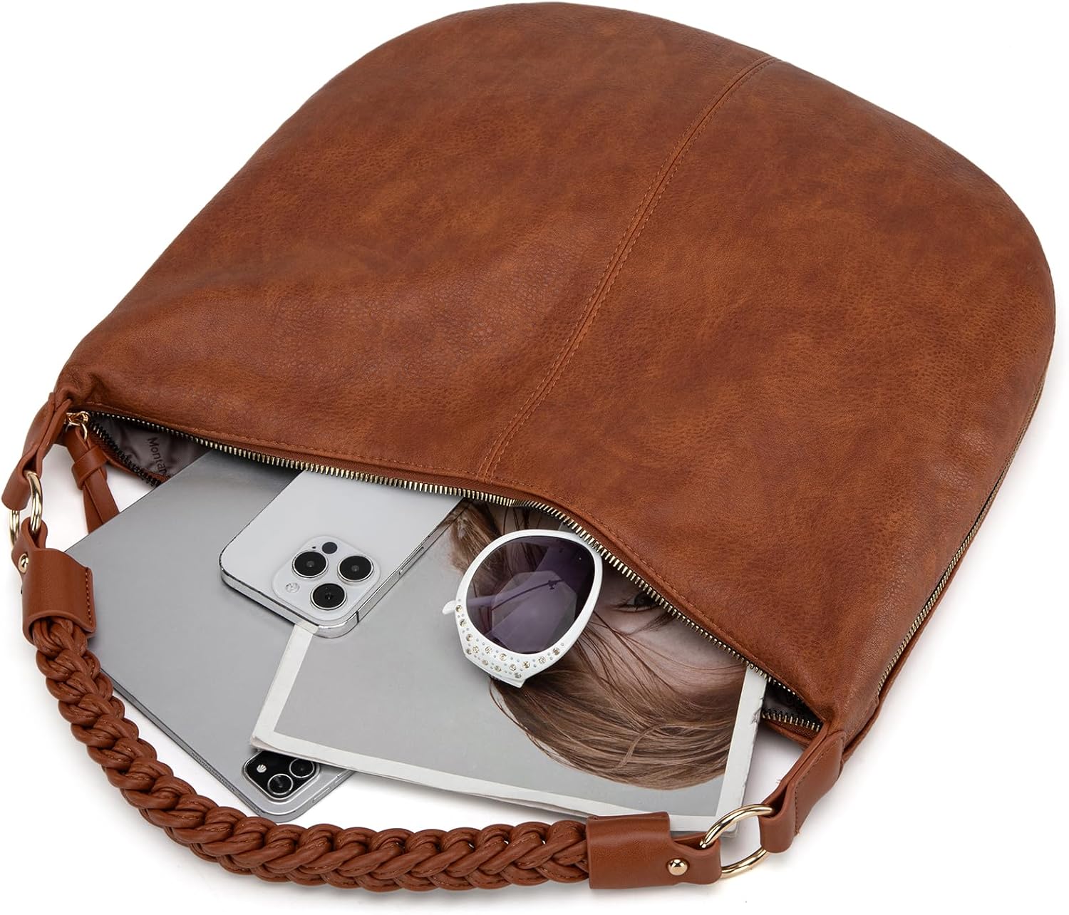 Hobo Bags for Women Large Slouchy Tote Bag PU Leather Hobo Purse with Zipper and Woven Handle