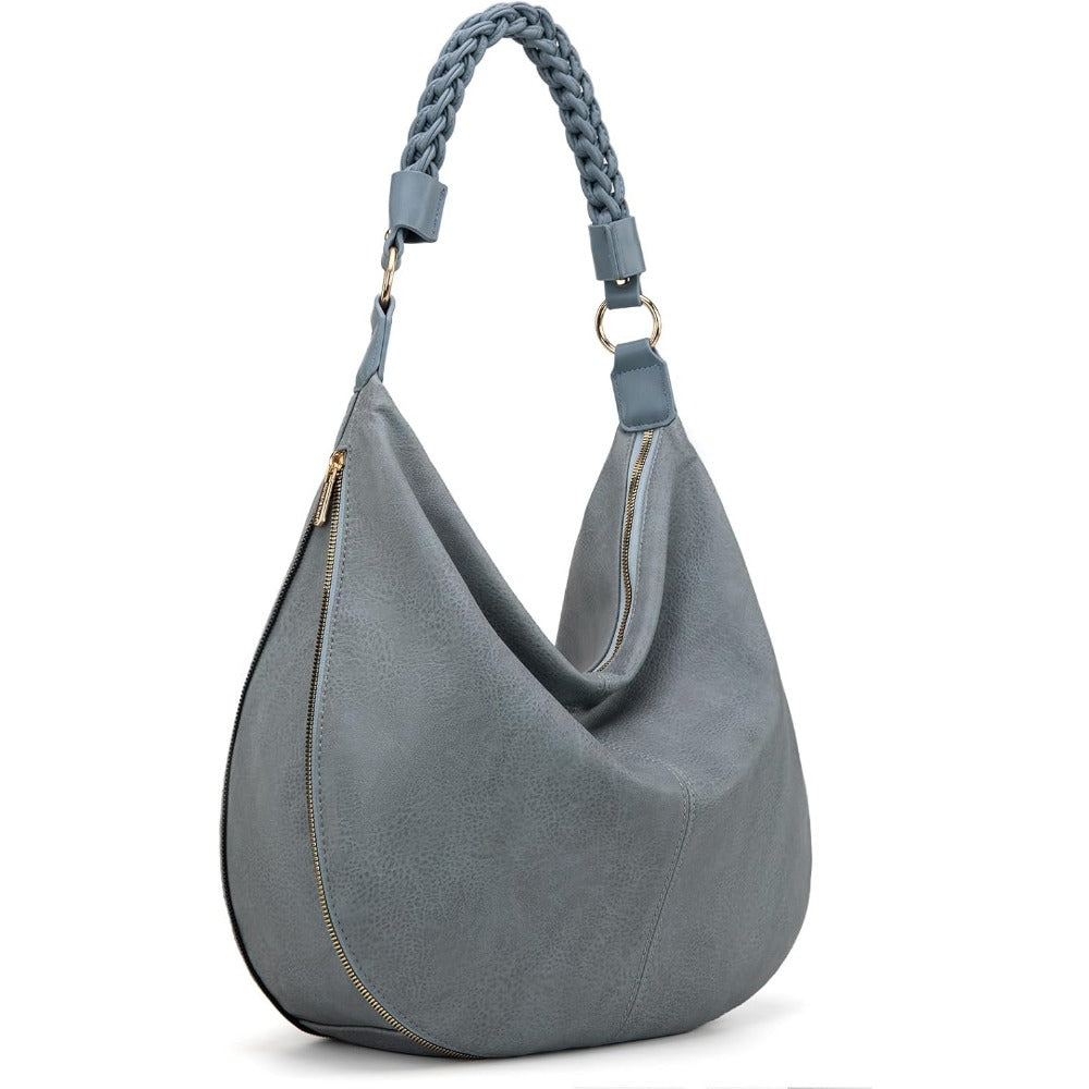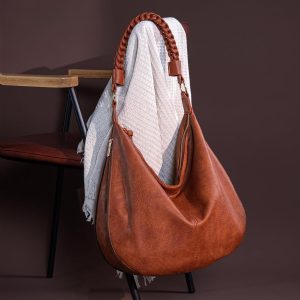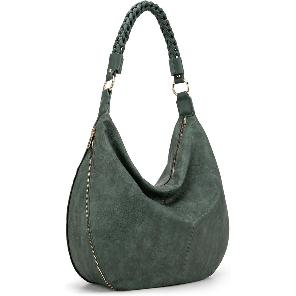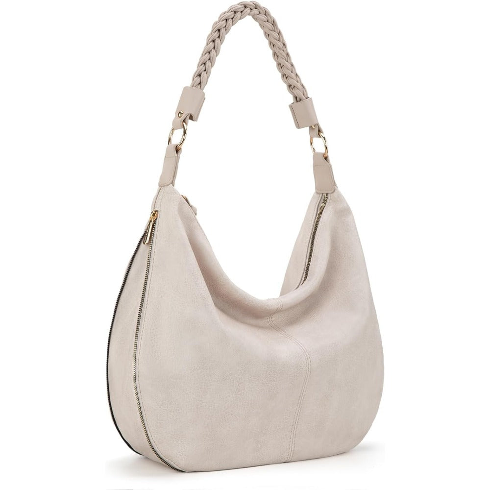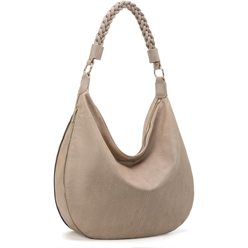 Hobo Bags for Women Large Slouchy Tote Bag PU Leather Hobo Purse with Zipper and Woven Handle