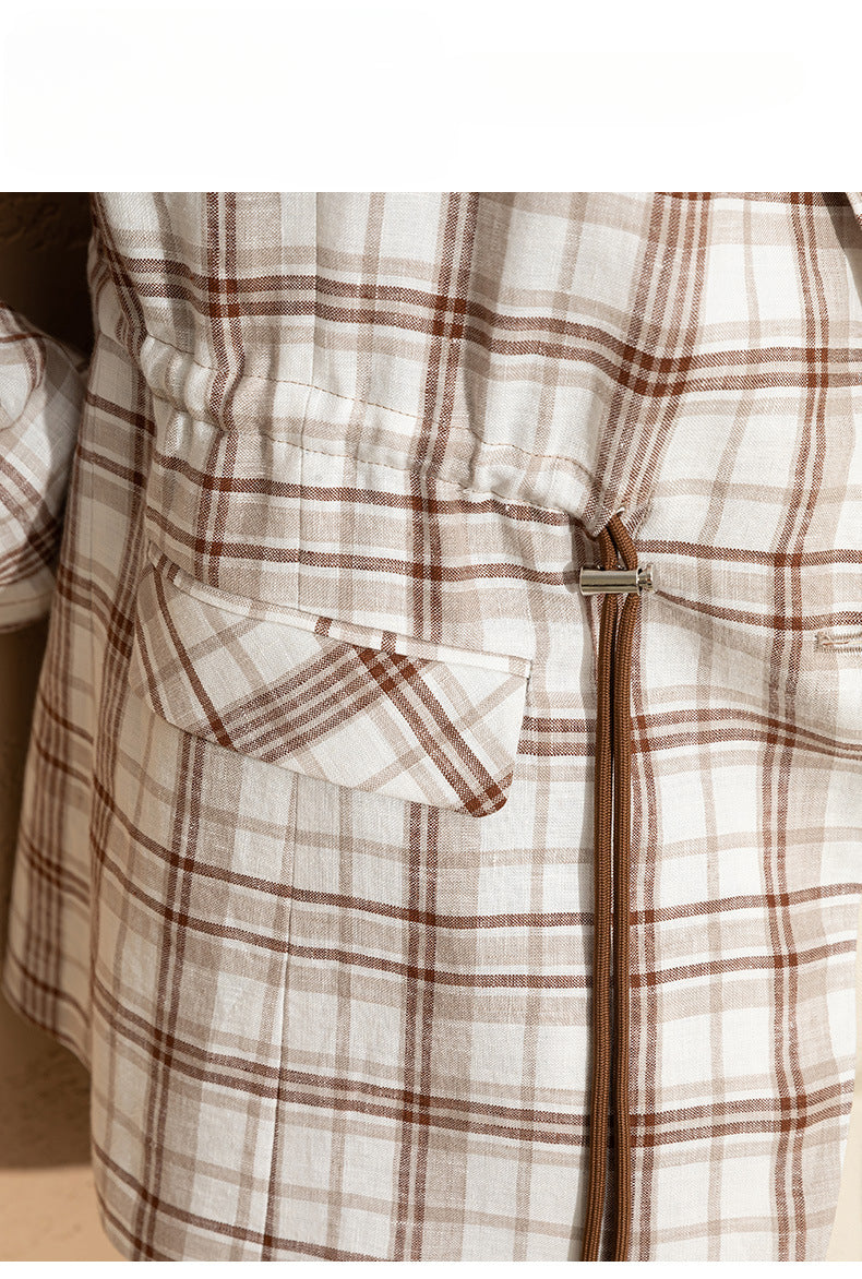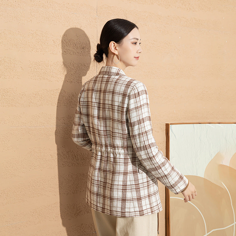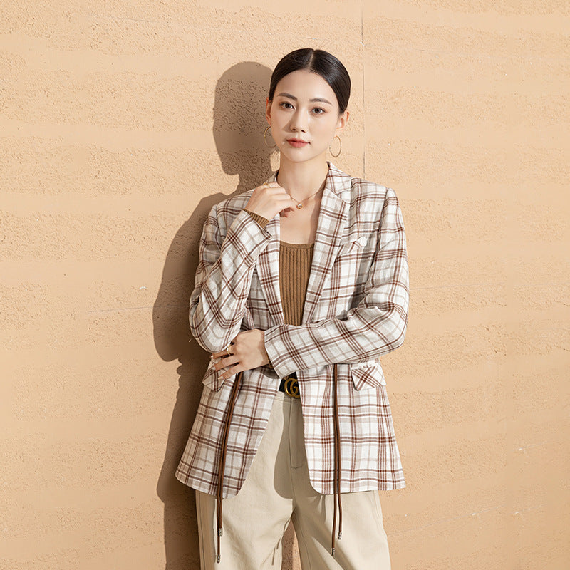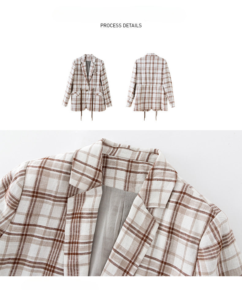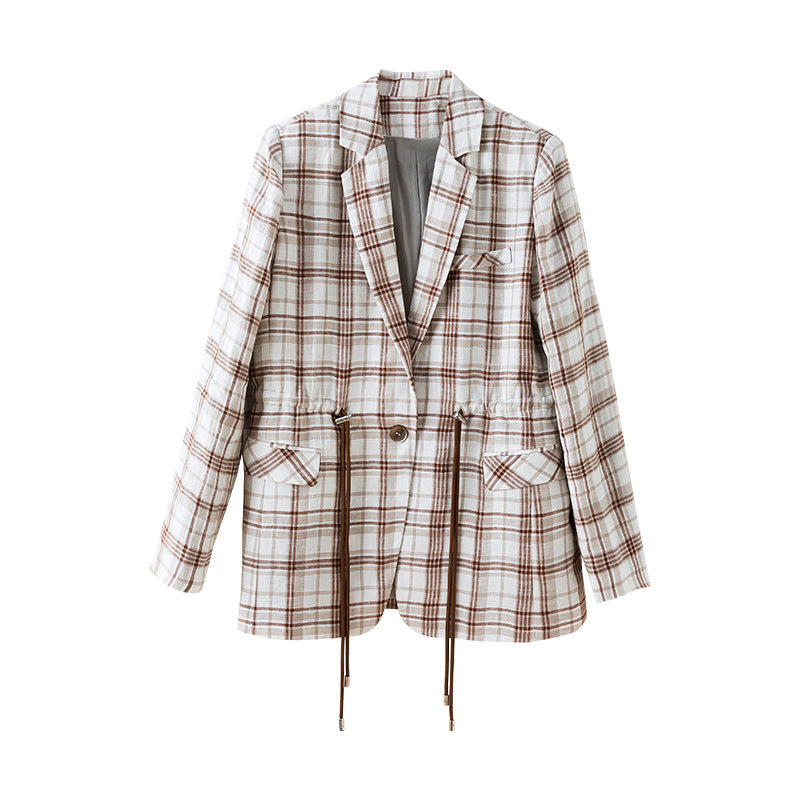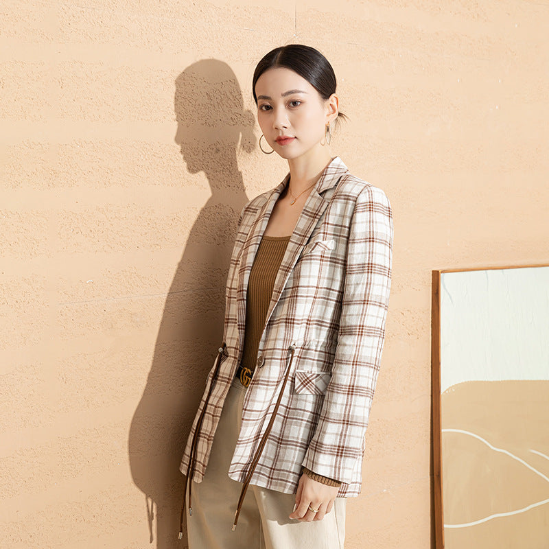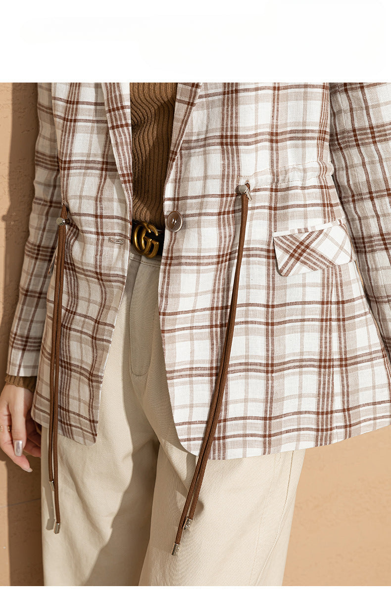Linen plaid suit jacket for women in spring 2024, new niche design, high-end small casual suit