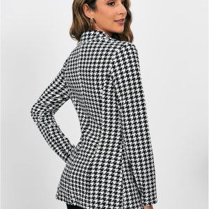 Long Sleeve, Padded Shoulder, Flap Pockets, Plaid Blazer, Single Front Button Design, Work Suit Jacket