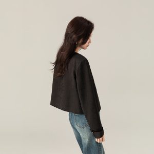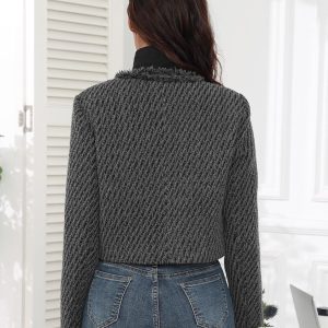 Tweed Blazer Jackets for Women Long Sleeve Elegant Office Work Business Casual Cropped Tweed Jacket