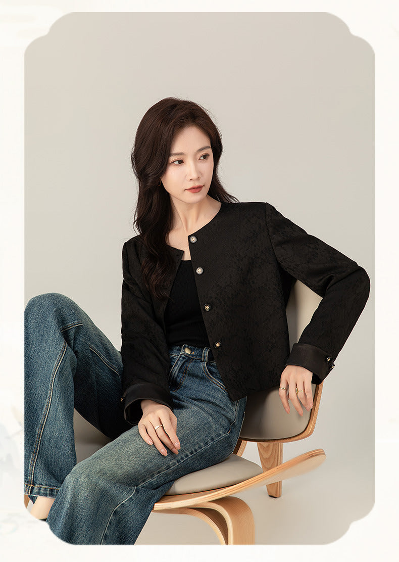 Short jacket women’s autumn 2024 new jacquard texture casual Chinese style jacket