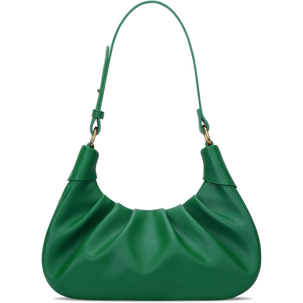Shoulder Bag Crescent Handbag Ruched Purse Underarm Bag Mini Hobo for Women,Detachable Gold Chain Crossbody Bag
