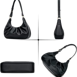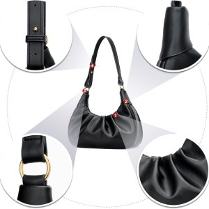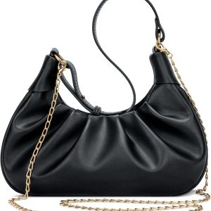 6 reviews for Shoulder Bag Crescent Handbag Ruched Purse Underarm Bag Mini Hobo for Women,Detachable Gold Chain Crossbody Bag