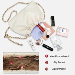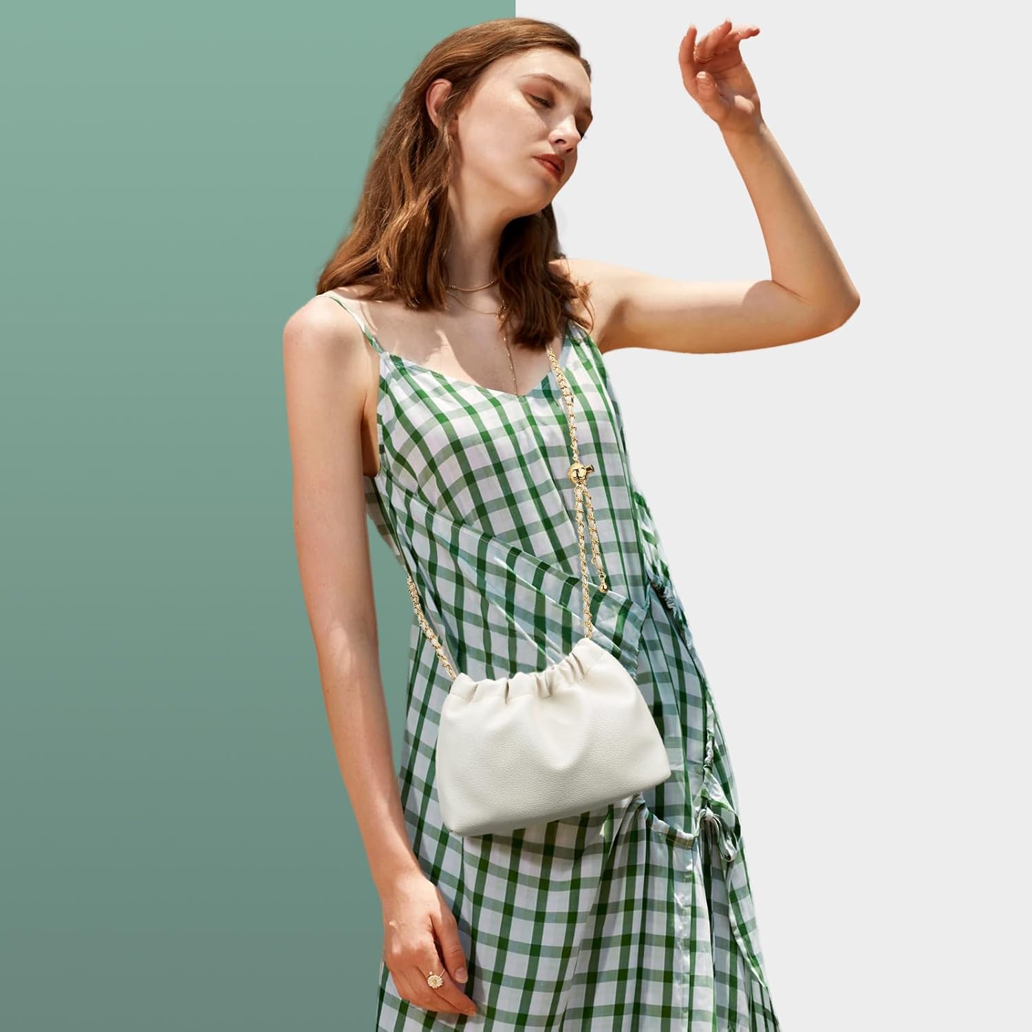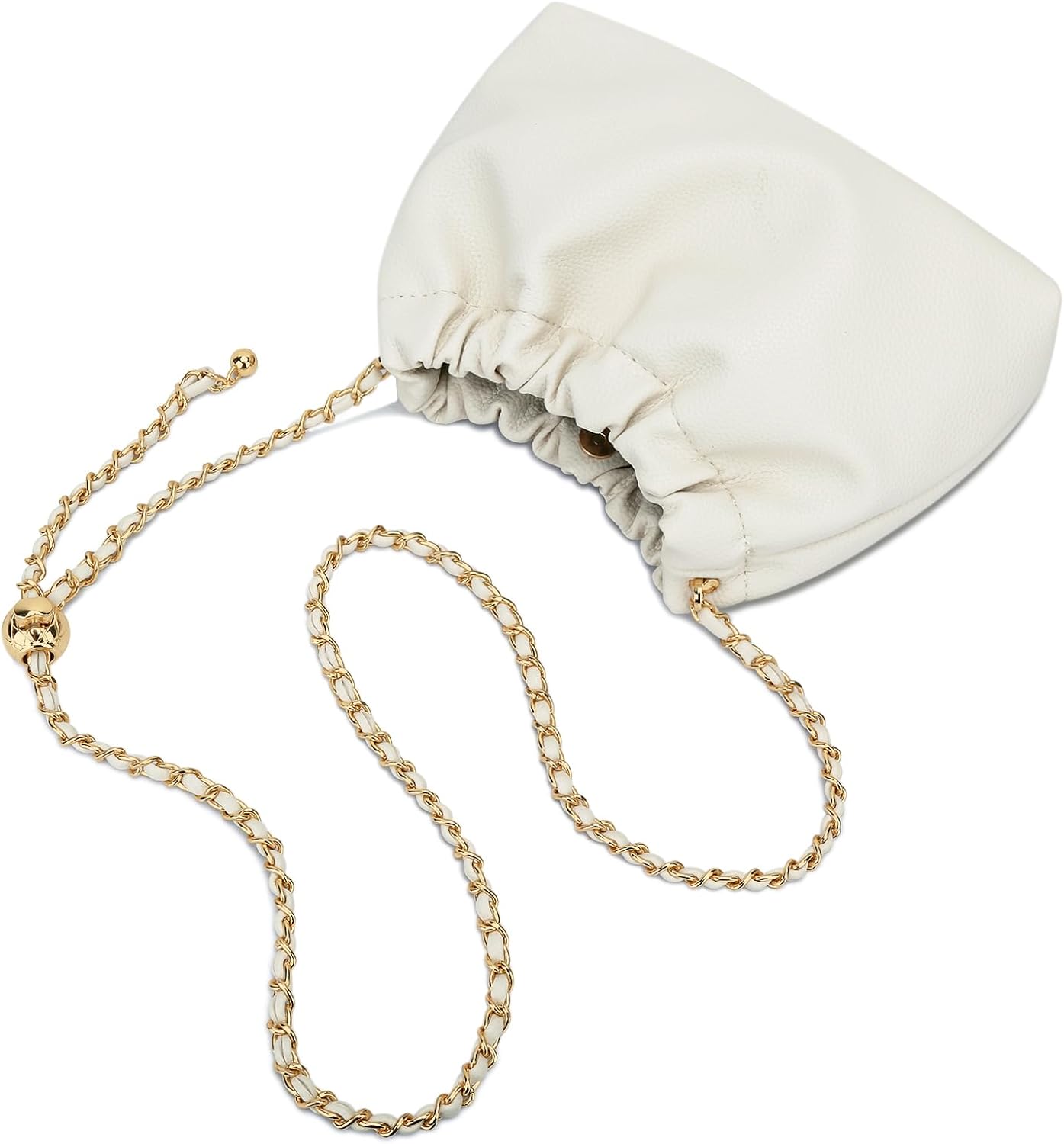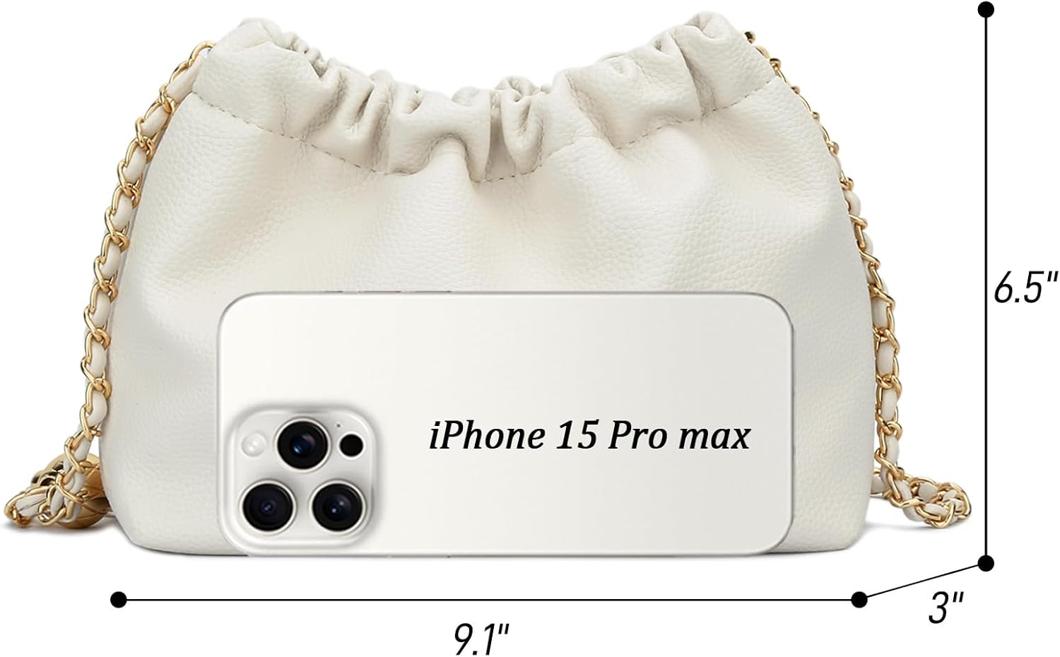 Design: This crossbody bag features a unique pleated design and an adorable lucky bag shape. The addition of a metal chain makes you stand out in the crowd, exuding a distinctive charm.