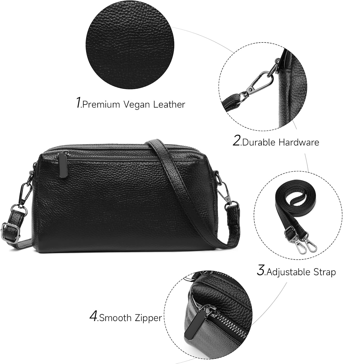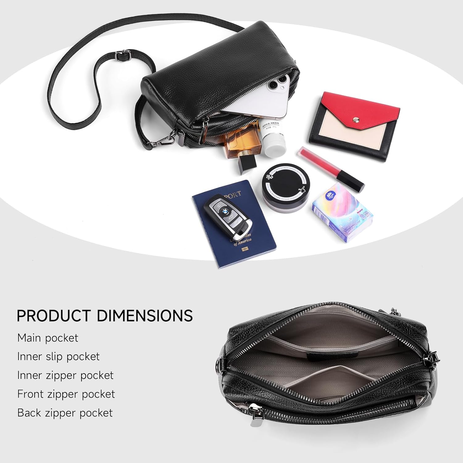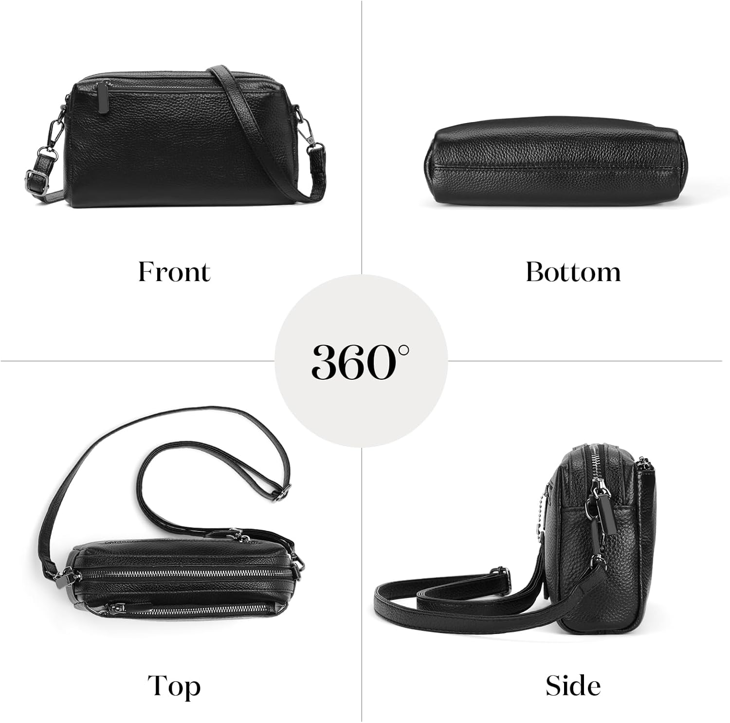 Triple Zip Small Crossbody Bags for Women Genuine Leather Purses Shoulder Handbags with Adjustable Strap