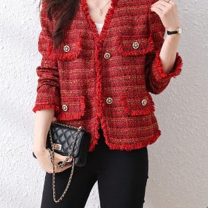 Be the first to review “Women’s Fall V-Neck Fringed Tweed Jacket Button Down Plaid Dressy Tweed Blazer Jacket” Cancel reply