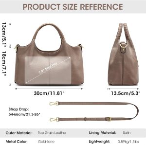 MORE CARRY WAYS: Features a detachable and adjustable cross body strap (drop: 21.3-26″) and 2 top handles (drop: 5.1”). Can be used as a crossbody purse, shoulder bag, top handle bag